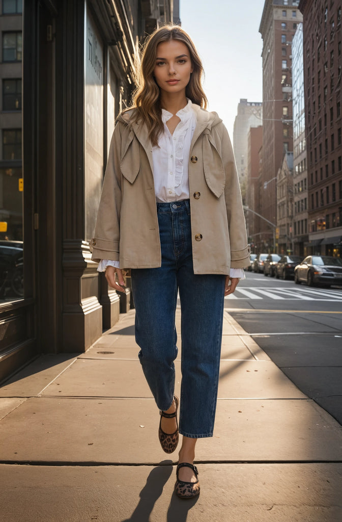 Trench Jacke mit abnehmbarer Kapuze – 100 % Baumwolle