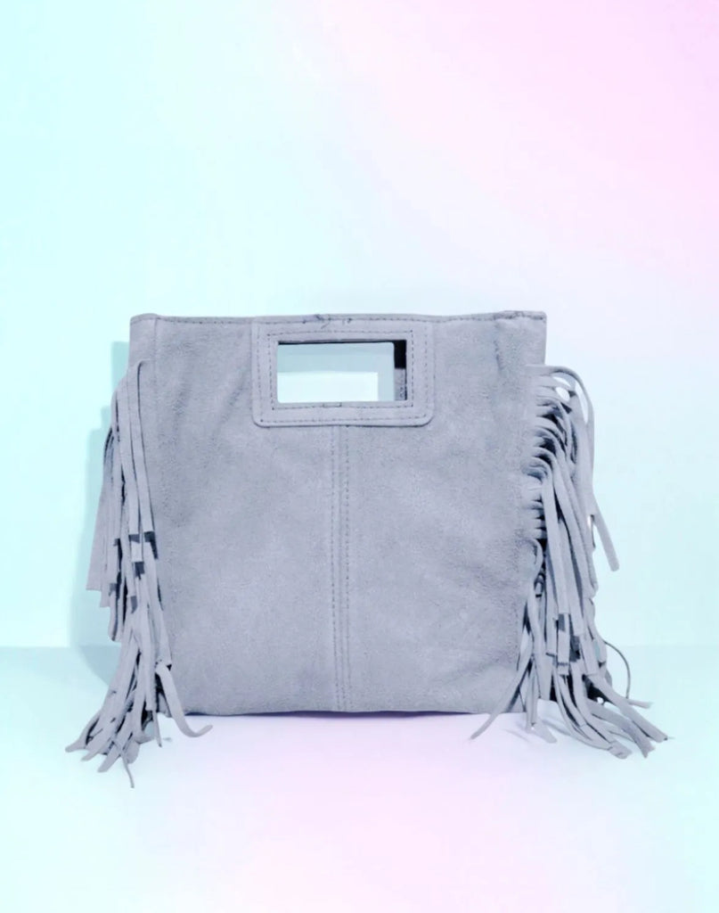 Kleine eckige Wildleder Tasche mit Fransen